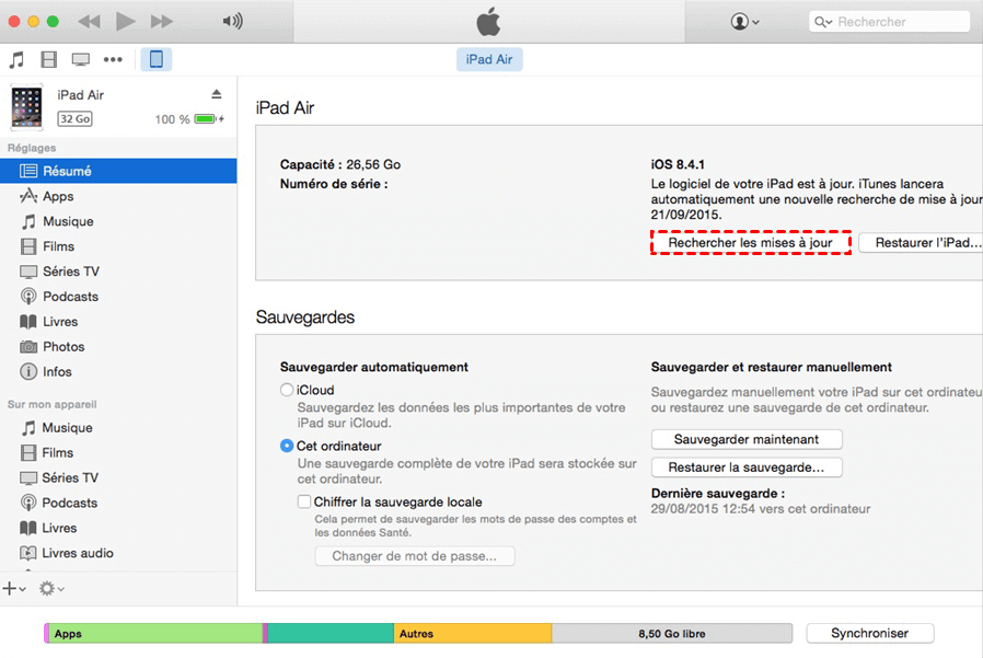 Mettre à jour l'iPad avec iTunes sur PC