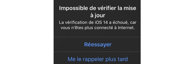 Problème de connexion à Internet lors de la mise à jour d'iOS
