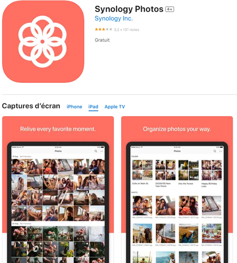 ✦ Téléchargez Synology Photos depuis l'App Store sur votre iPad.