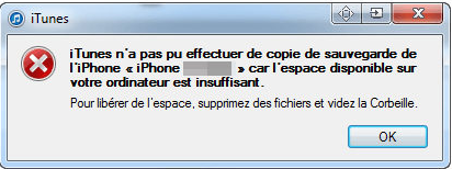 Comment résoudre la sauvegarde iPhone impossible espace insuffisant PC sur iTunes ?