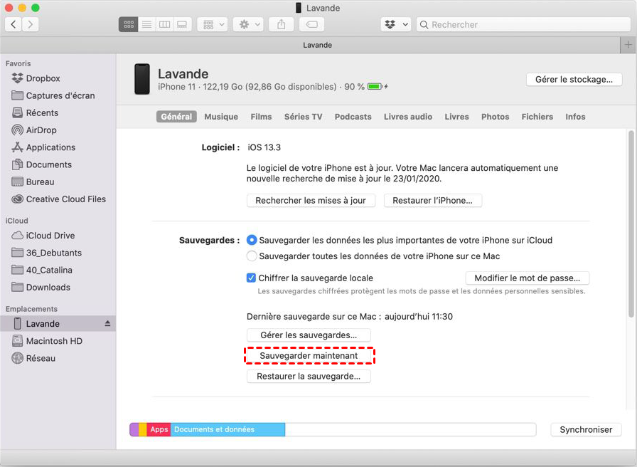 II. Sauvegarder l'iPhone sur un disque externe via Finder dans Mac OS Catalina