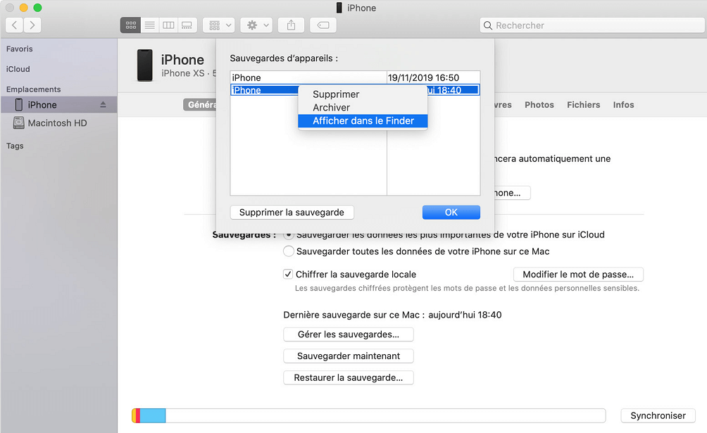 Si vous avez sauvegardé votre iPhone sur Mac, vous pouvez déplacer la sauvegarde vers un disque dur externe en suivant les étapes ci-dessous :