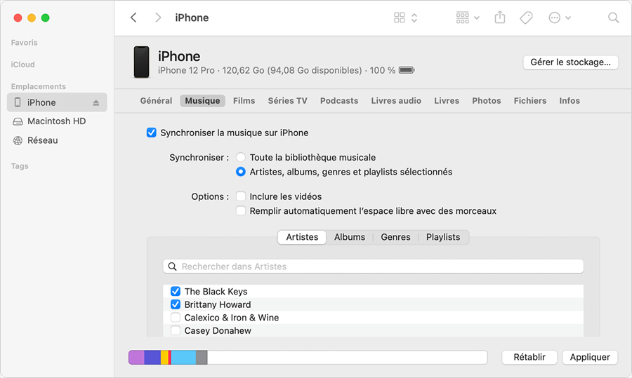 Étapes pour synchroniser la bibliothèque iTunes avec iPhone