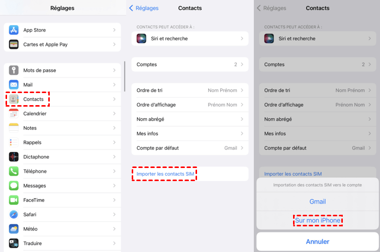 Si vos contacts sont stockés sur la carte SIM, c'est très simple de transférer des contacts vers un nouvel iPhone sans iCloud. Il suffit d'importer les contacts de la carte SIM vers l'iPhone.