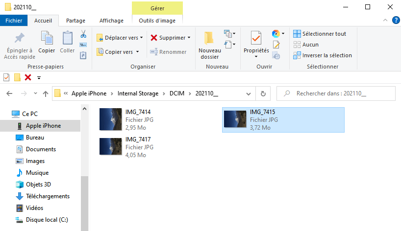 Méthode 1. Transférer les photos iPhone vers Lenovo par l'Explorateur de fichiers