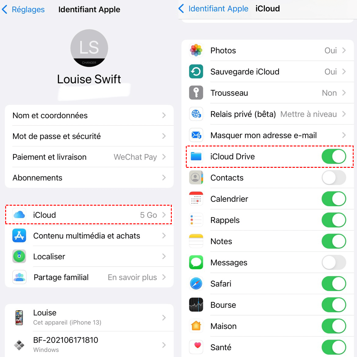 Si vous vous demandez comment transférer des mémos vocaux de l'iPhone vers le PC sans iTunes, cette méthode vous conviendra pour partager plusieurs mémos vocaux avec l'iPhone. Avec iCloud Drive sur iPhone, vous pouvez partager des enregistrements de mémos vocaux et d'autres fichiers pris en charge entre des appareils connectés avec le même Apple ID.