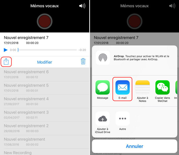Voici des instructions sur la façon d'obtenir des mémos vocaux de l'iPhone à l'ordinateur (PC et Mac) que vous pouvez suivre pour l'essayer. (Prenez l'exemple du partage d'e-mails) :