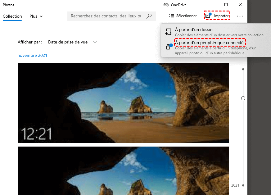 L'application Photos est un gestionnaire de photos de Windows 10 qui vous aide à transférer photos iPhone vers PC Windows 11, 10, 8, 7. Vous pouvez ensuite les enregistrer sur une clé USB.