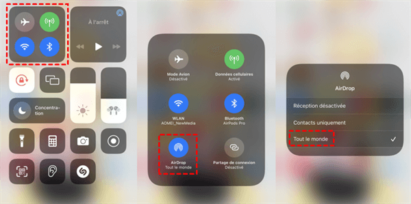 Étape 1. Activez AirDrop sur votre iPhone sous le Centre de contrôle, cochez Contacts uniquement ou Tout le monde.