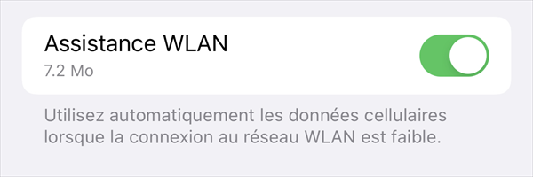 Certains utilisateurs ont signalé que la désactivation et la réactivation de l'Assistance WiFi semblaient aider à résoudre le problème de déconnexion du WiFi sur iOS 16 et 15. Allez dans Réglages > Appuyez sur Données cellulaire > Désactivez l'Assistance WiFi, puis réactivez-la après quelques secondes.