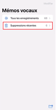 La première méthode consiste à vérifier si les mémos vocaux supprimés se trouvent toujours dans le dossier Suppressions récentes de votre iPhone. Lorsque vous supprimez un enregistrement vocal de votre iPhone, il reste par défaut dans le dossier Suppressions récentes pendant 30 jours. Après cela, il est supprimé définitivement.