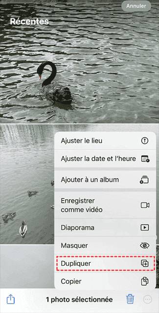 Voici les étapes pour créer des doublons de photos sur iPhone :