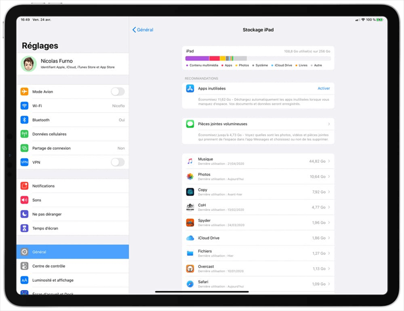 Vérifier le stockage de l'iPad