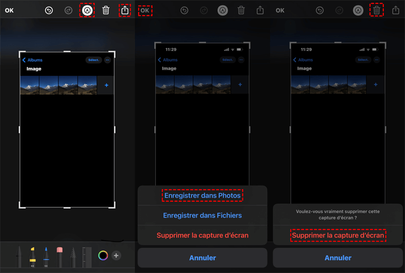 • Supprimer la capture d'écran : Appuyez sur le bouton Corbeille et choisissez Supprimer la capture d'écran pour confirmer.