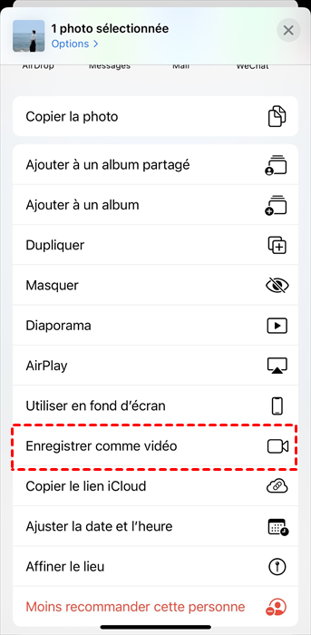 Après avoir pris votre live photo, vous pouvez utiliser les méthodes suivantes pour partager une live Photo sur votre iPhone et iPad.