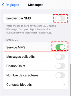 Pour résoudre le problème d'iPhone qui n’envoie pas des SMS vers Android, une autre mesure que vous pouvez prendre est de vérifier vos paramètres de SMS, car certains paramètres peuvent avoir été modifiés par inadvertance.
