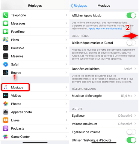 Méthode 1. Désactiver la bibliothèque musicale iCloud sur l'iPhone