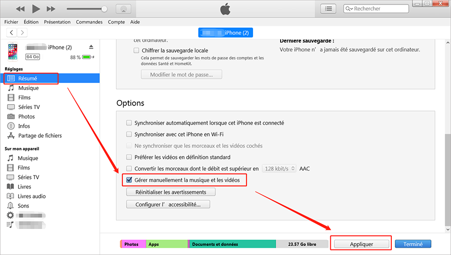 Méthode 2. Vérifier la gestion manuelle de la musique et des vidéos
