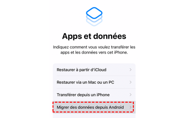 Étape 3 : Choisissez l'option Migrer des données depuis Android.
