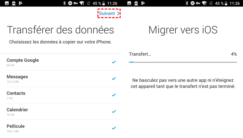 Migrer vers iOS : migrer des données Android vers iPhone