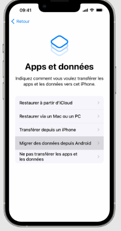 4. Sélectionnez Migrer des données depuis Android lorsque vous voyez Indiquez comment vous voulez transférer les apps et les données vers cet iPhone sur l'iPhone.