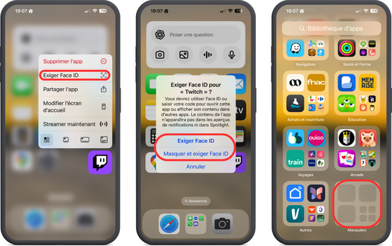 - L'option Masquer et exiger Face ID désactive toutes les notifications et alertes liès à l'app. Elle ne convient pas aux applications de messagerie que vous utilisez frequemment.
