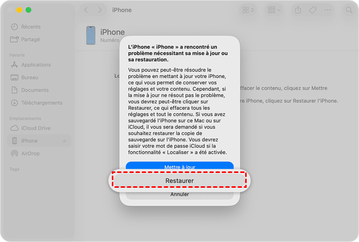 Méthode 1 : Débloquer iPhone sans code via iTunes / Finder (Officiel)