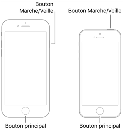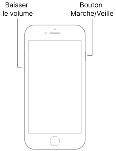 - Pour iPhone 6s et antérieurs : Maintenez simultanément le bouton Accueil et le bouton de mise en marche jusqu'à ce que l'écran du mode de récupération apparaisse.