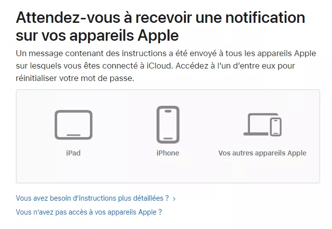 Si vous n’avez pas accès à un appareil Apple ou à un contact de récupération, vous pouvez réinitialiser votre mot de passe directement sur un site web d’Apple. Cette méthode fonctionne sur tout appareil disposant d’un navigateur web.