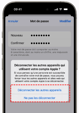 Il permet aussi de choisir de déconnecter les autres appareils ou de ne pas les déconnecter selon votre situation, et après, vous pouvez utiliser ce nouveau mot de passe pour vous connecter à l'identifiant Apple.