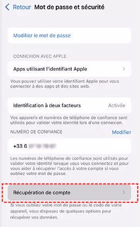 Solution 2. Mot de passe Identifiant Apple oublié - Contact de récupération de compte