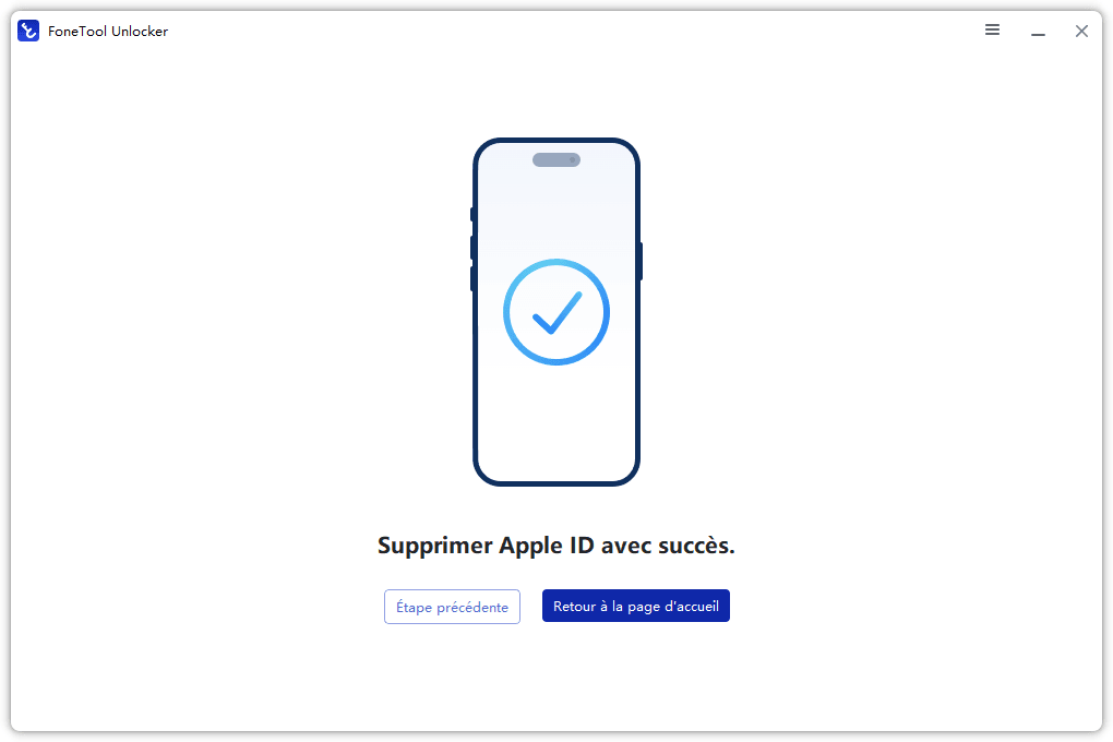 Voilà, c'est toutes les méthodes efficaces pour supprimer un identifiant Apple sans mot de passe. Nous vous recommandons vivement d'utiliser FoneTool Unlocker pour supprimer votre identifiant Apple sans mot de passe très rapidement. D'ailleurs, cet outil pratique vous sera aussi utile de déverrouiller un iPhone quand on a oublié le code en un clic. Si vous en avez besoin, essayez-le dès maintenant !