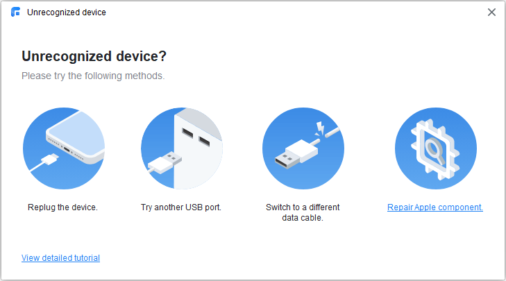 Step 1. Click the text "Device cannot be recognized" on the home screen.