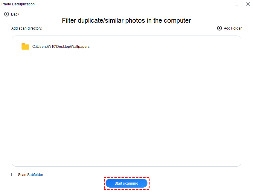 Step 3: Select the folder to be scanned and click the "Start scanning" button.