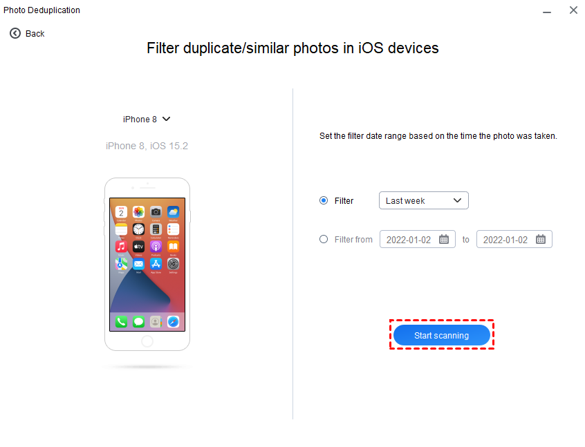 Step 3: Specify the shooting time range, and then click the "Start scanning" button to scan and compare the photos taken during this time period.