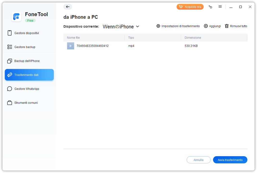 Se un video iPhone di grandi dimensioni non viene visualizzato sul PC, puoi fare affidamento su FoneTool, uno strumento professionale di trasferimento dati iOS che ti aiuta a trasferire facilmente video da iPhone a PC.