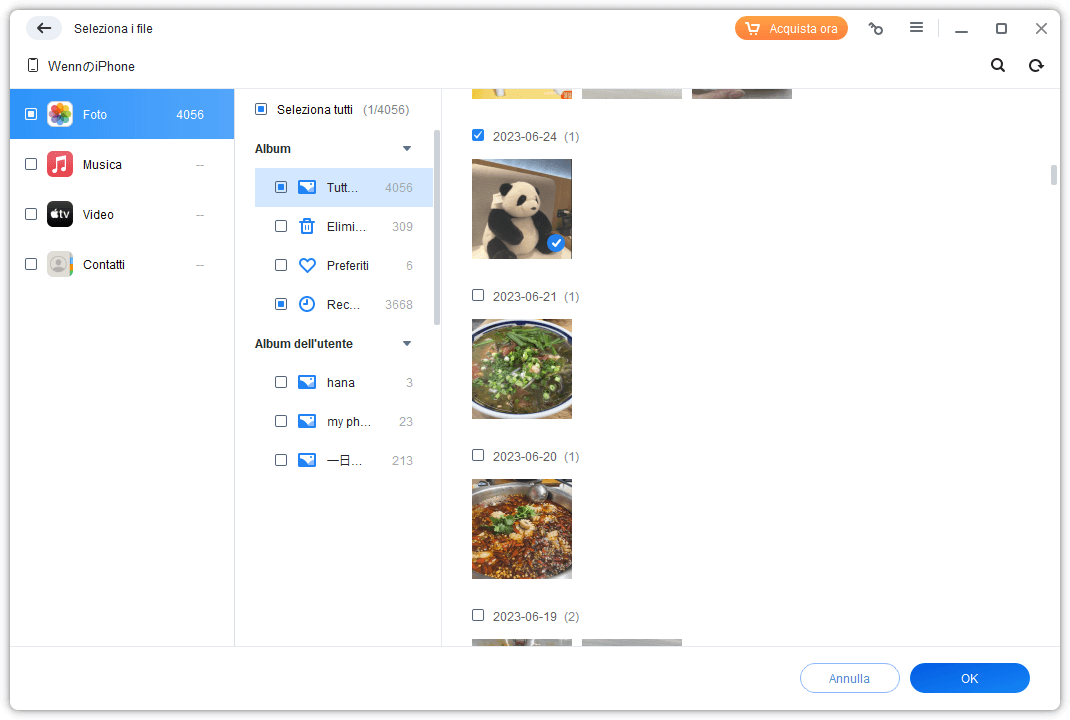 ✌ Trasferimento selettivo e in anteprima: Selezionare i dati come foto/musica/contatti/messaggi da trasferire e visualizzare l'anteprima dei file prima di trasferirli sul PC.