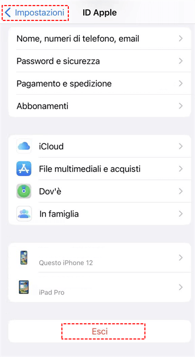 È semplice e immediato modificare l'ID Apple su iPhone/iPad. Vai all'app Impostazioni iPhone > Tocca [il tuo nome] > Scorri fino alla parte inferiore dello schermo e tocca Esci.