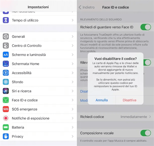 Se viene ancora visualizzato il messaggio "nessuna immagine trovata su iPhone" su Windows 10/11/8.1/8/7/XP, puoi considerare di disattivare temporaneamente il passcode per vedere se è possibile risolvere il problema. Ecco i passaggi per disattivare il passcode sul tuo iPhone: