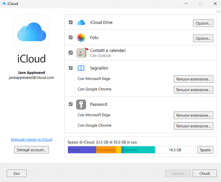 Contro di iCloud per Windows: