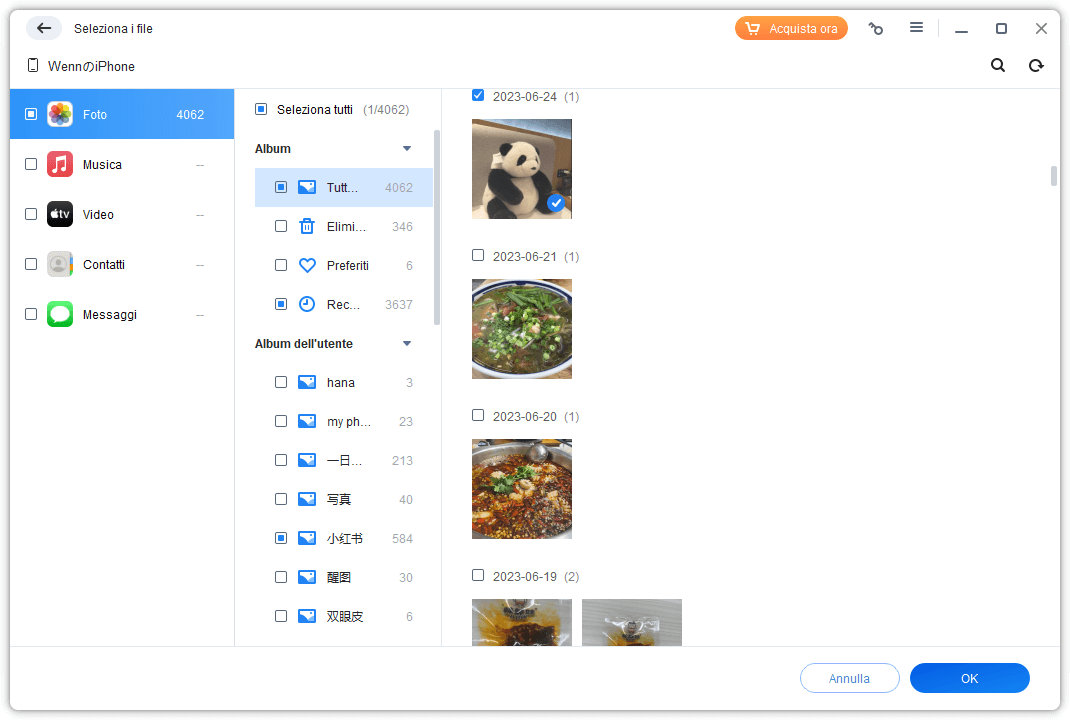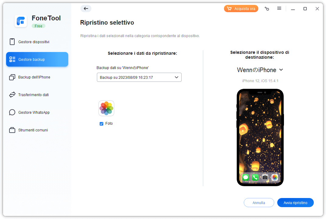 Può aiutarti a trasferire contatti, messaggi, foto, video e brani selezionati. È possibile visualizzare in anteprima e scegliere gli elementi necessari prima del backup e del ripristino.