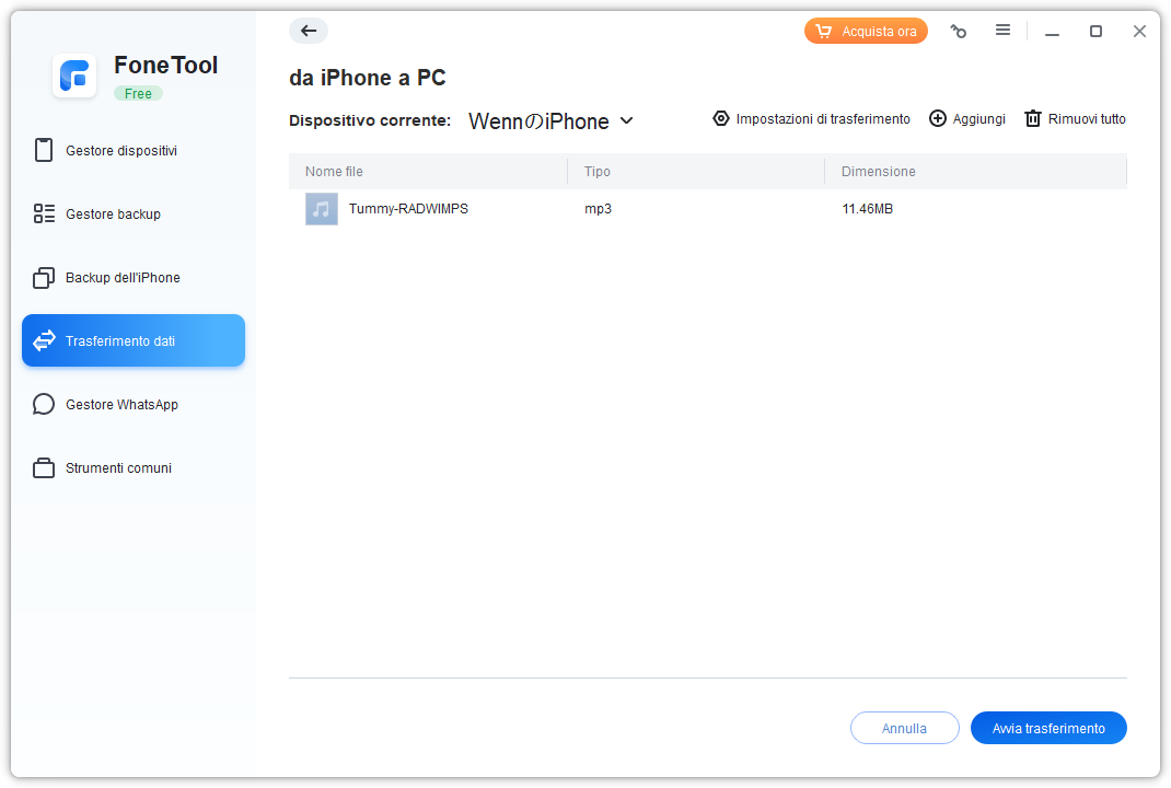 - Se hai un computer a portata di mano, puoi lasciare che FoneTool ti aiuti a trasferire tutto o i file selezionati da iPhone a un altro.