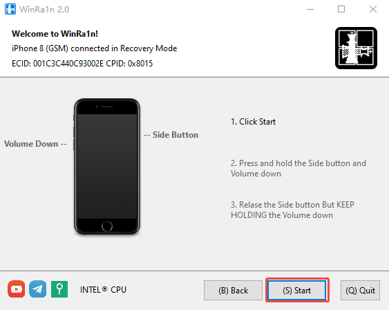 Per il primo jailbreak, prendiamo WinRa1n come esempio: