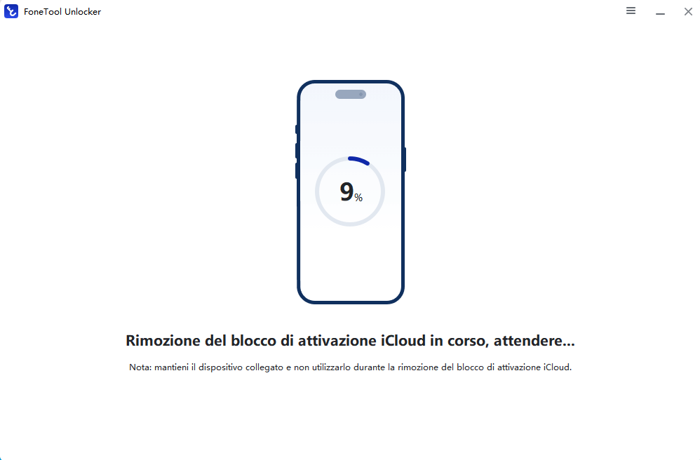 1. Avvia FoneTool Unlocker, collega il dispositivo iOS jailbroken al computer tramite cavo dati e clicca su Rimuovi Blocco di attivazione iCloud.