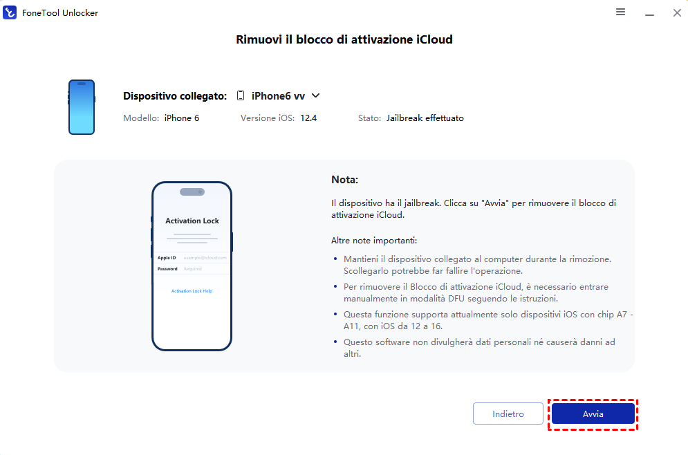 Prima di rimuovere il Blocco di attivazione iCloud tramite FoneTool Unlocker, esegui il jailbreak del dispositivo iOS sul computer. Consulta il link per le istruzioni.