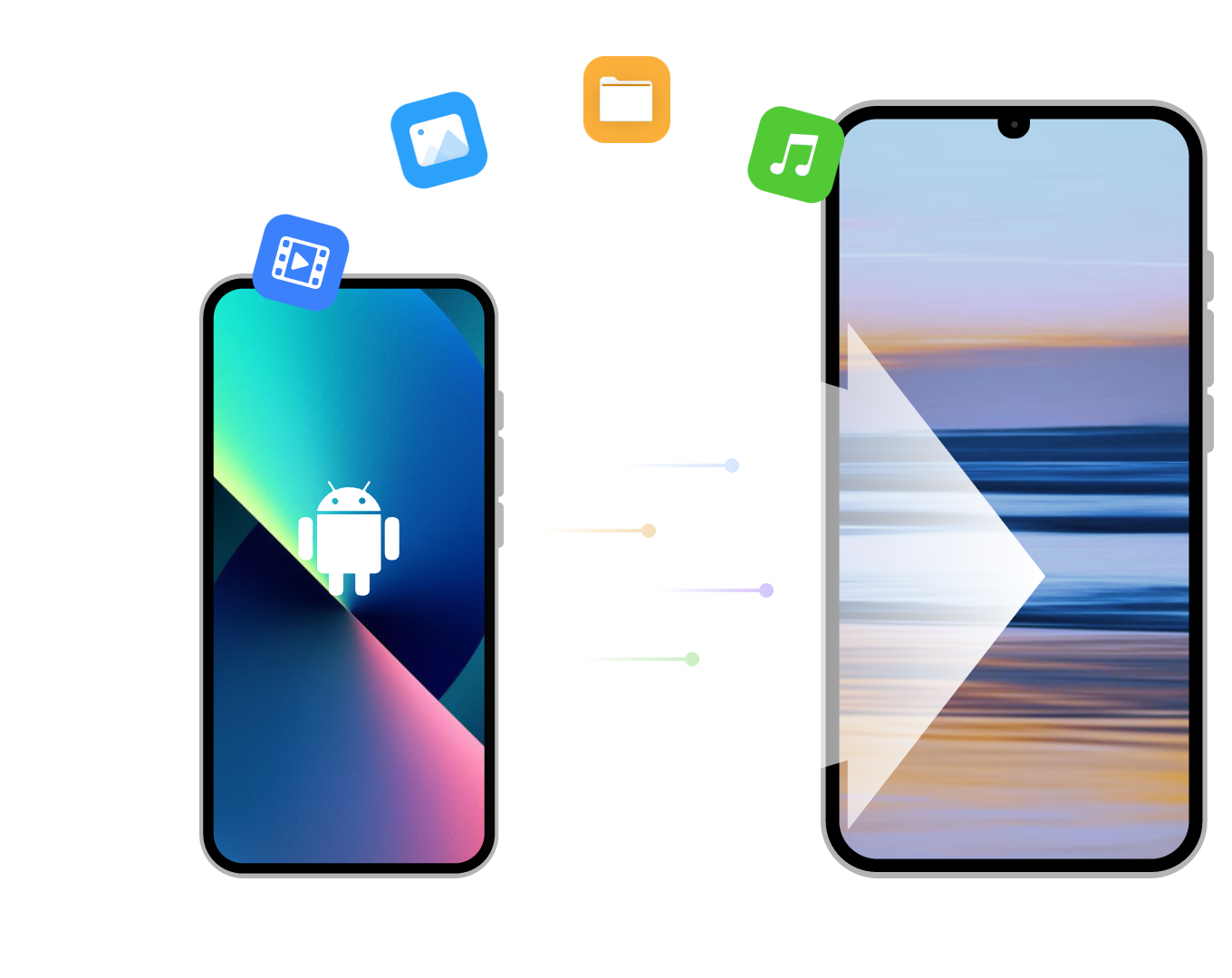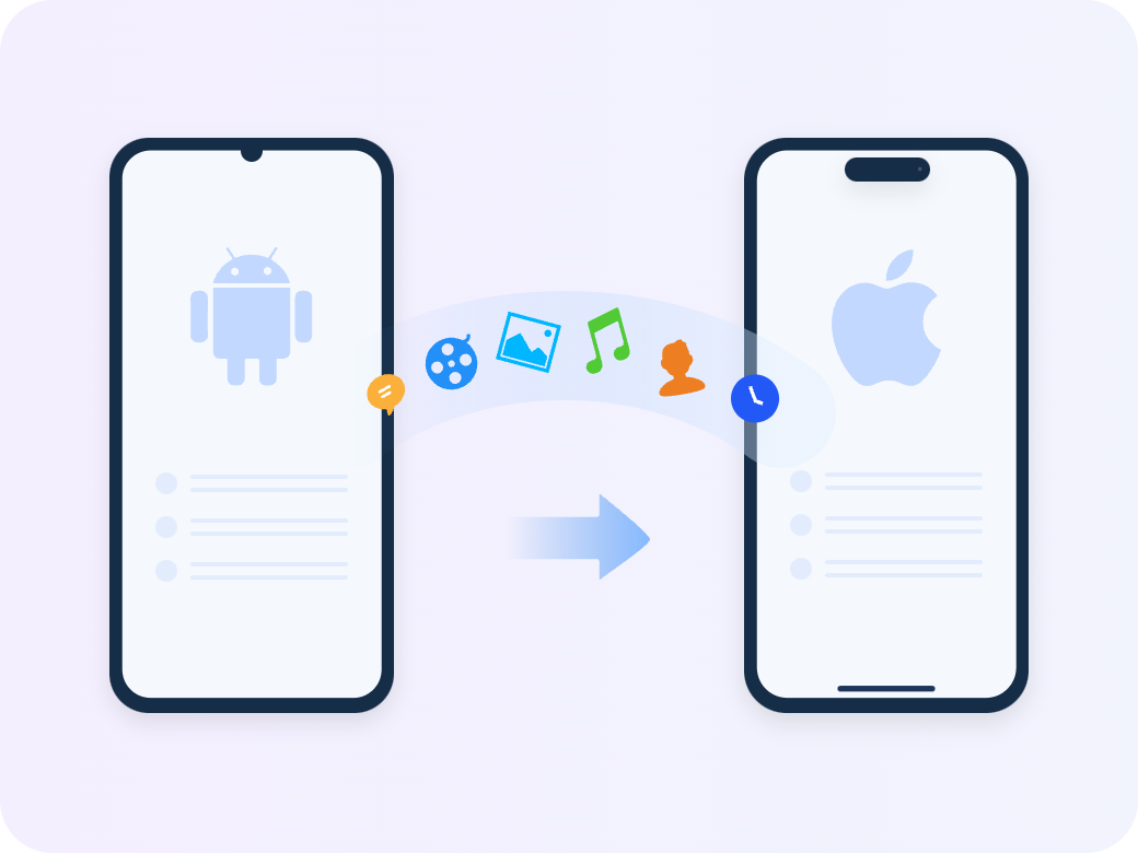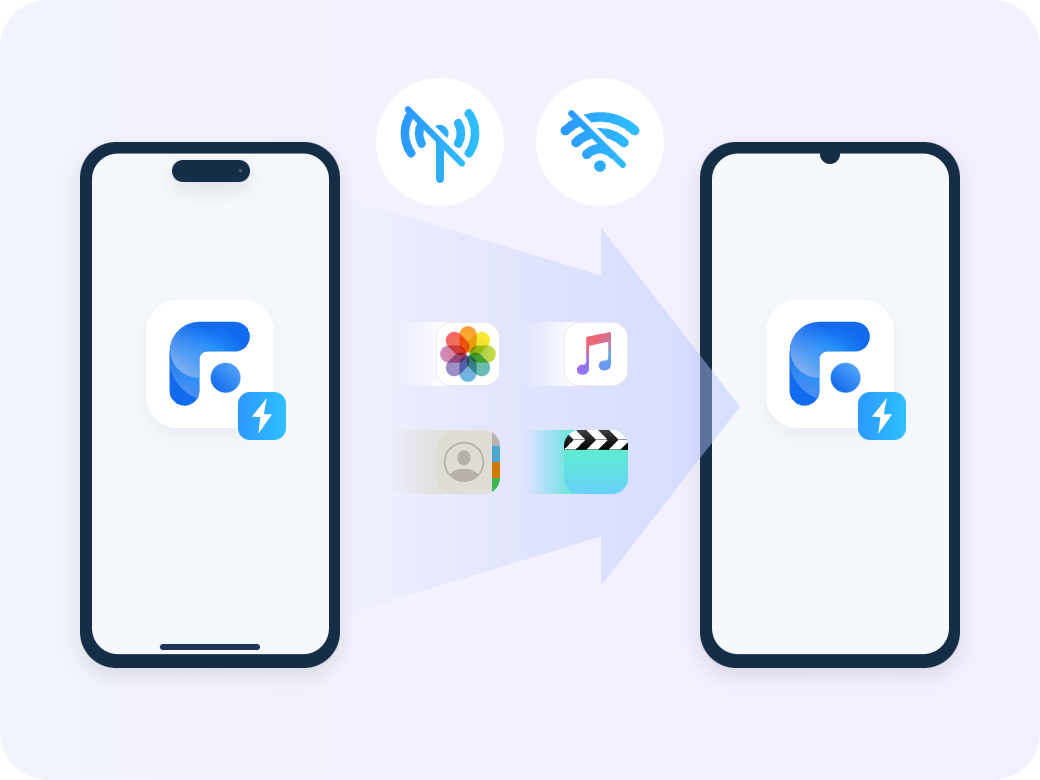 FoneToolのテクノロジーとゼロトラフィック転送により、AndroidとiOS間で写真、動画、音楽、連絡先などを超高速で転送できます。
