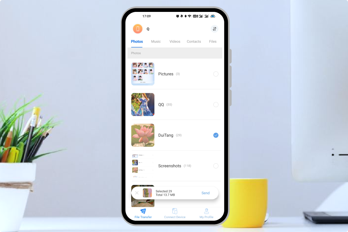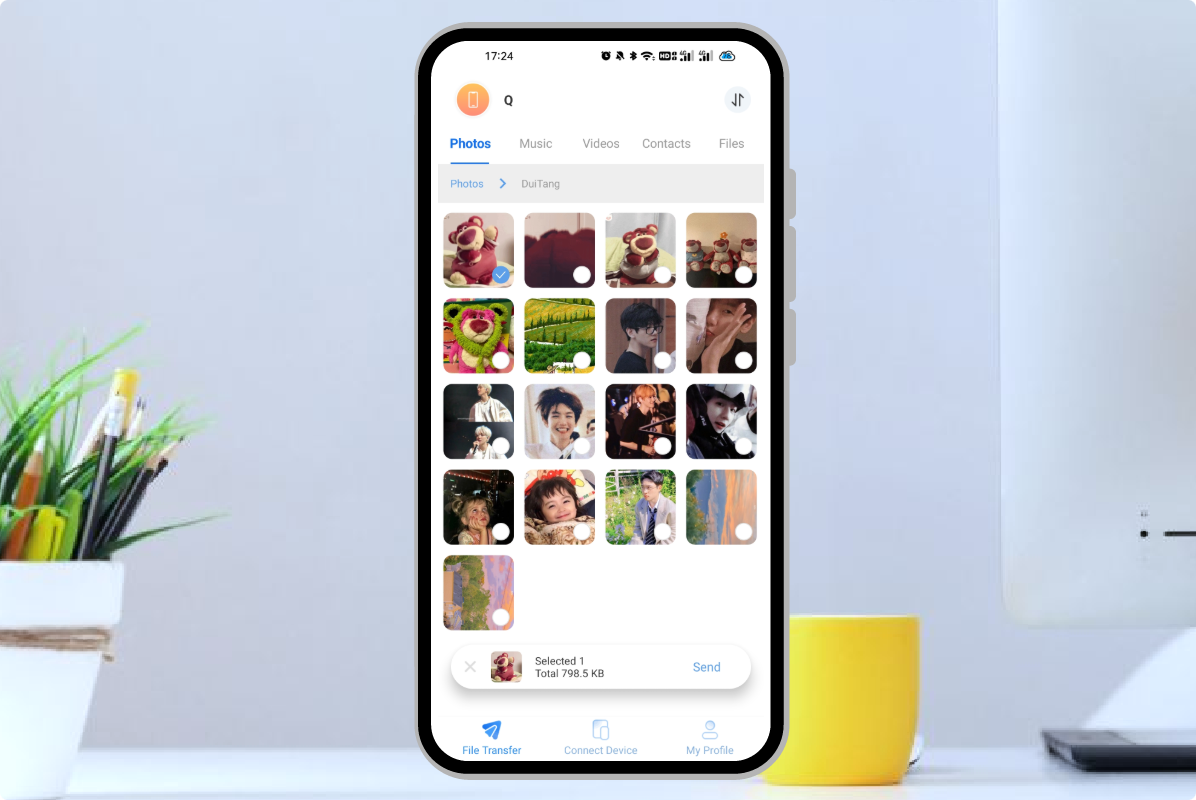 「送信」をクリックして、AndroidからAndroidまたはiPhoneへファイルを転送します。