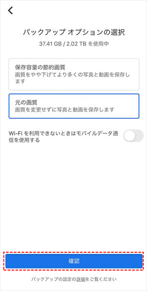 - 「元の画質」を選択すると、iCloudと同じく15 GBのストレージ制限があります。