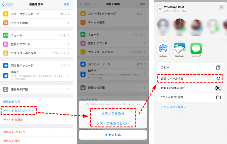 WhatsAppチャット履歴をメールにエクスポートする場合、以下の手順に従って下さい。