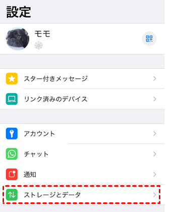 ステップ 1. iPhoneでWhatsAppを開く>「設定」>「ストレージとデータ」の順に進みます。